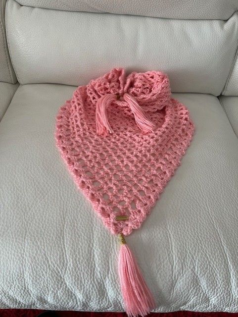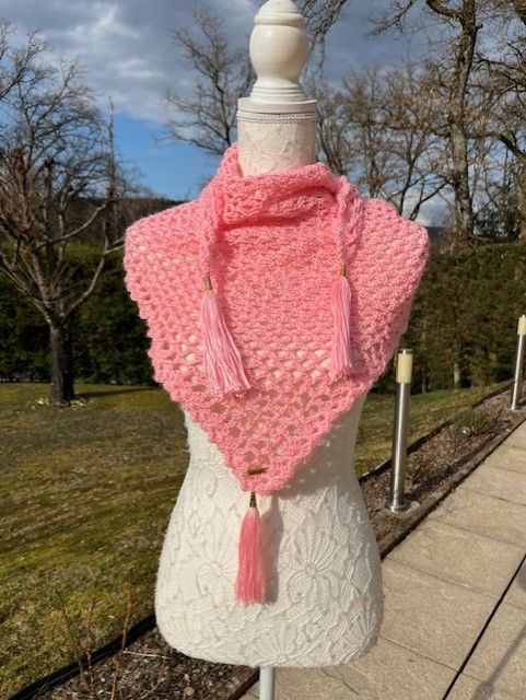 Enveloppez vous de délicatesse avec ce châle au crochet , entièrement réaliser à la main , son rose lumineux et tendre évoque la douceur du Printemps et apporte une touche féminine à toutes vos tenues .